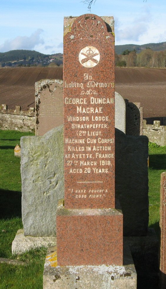 In/loving memory/of/GEORGE DUNCAN/MACRAE/Windsor Lodge/Strathpeffer/(2nd Lieut.)/Machine Gun Corps/killed in action/at Ayette, France/27th March 1918/aged 20 years.